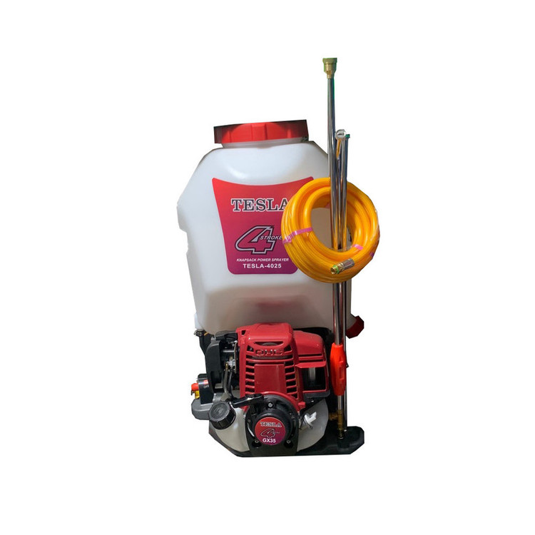 سمپاش های ساخت شرکت tesla از باکیفیت ترین محصولات در بازار ایران می باشند. سمپاش مدل tesla-4025 دارای یک موتور قدرتمند 4 زمانه می باشد. وزن خشک این سمپاش 10 کیلوگرم است و پشتی آن به صورت ارگونومیک طراحی شده تا کمترین فشار را به کمر کاربر وارد کند. همچنین سعی شده از انتقال لرزش موتور هنگام کار به فرد جلوگیری کند. حجم مخزن سمپاش 25 لیتر می باشد و همینطور فشار پاشش آن قابل تنطیم است.