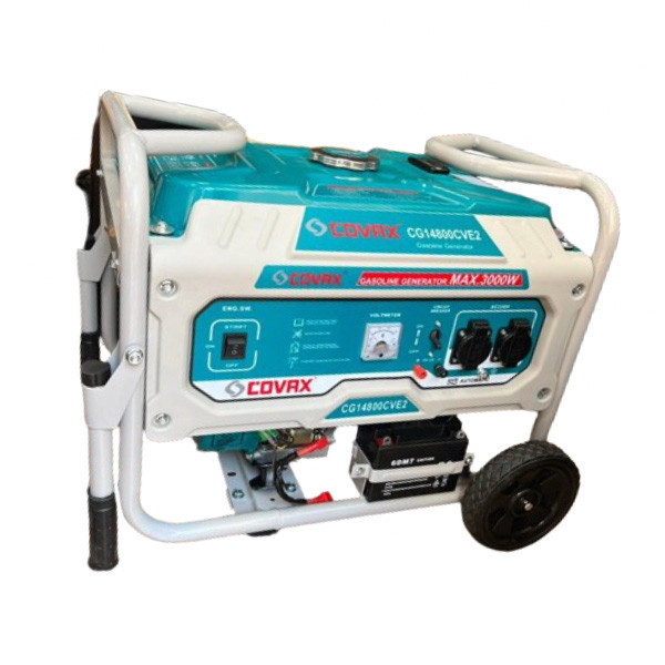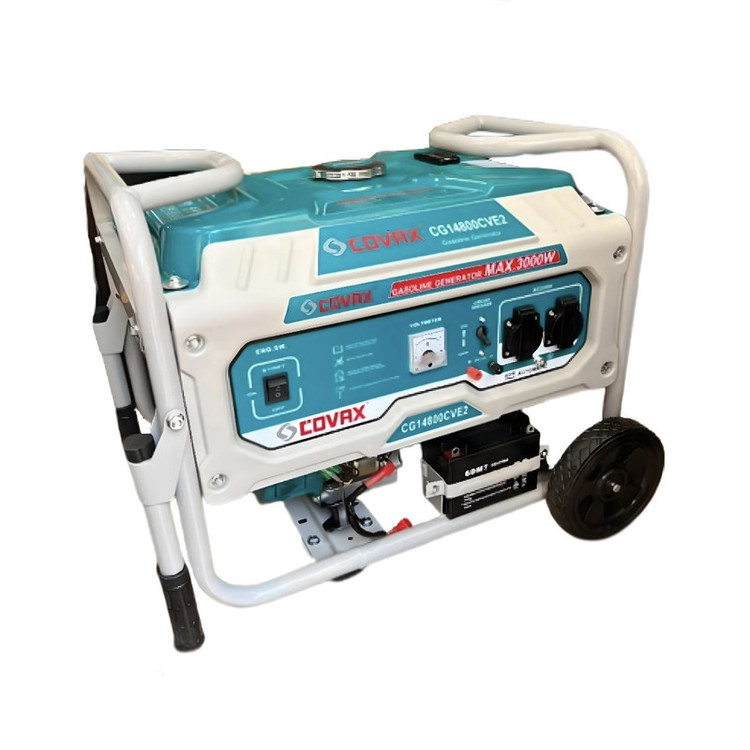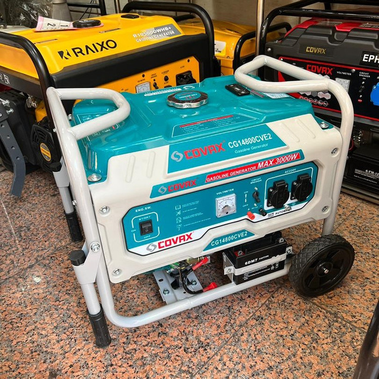 موتور برق کواکس مدل CG14800CVE2 باراه اندازی بصورت هندلی و استارتی و سوخت مصرفی بنزین و با ماکسیمم قدرت 3000W ومجهز به سیستم AVR برای تثبیت ولتاژ میباشد.