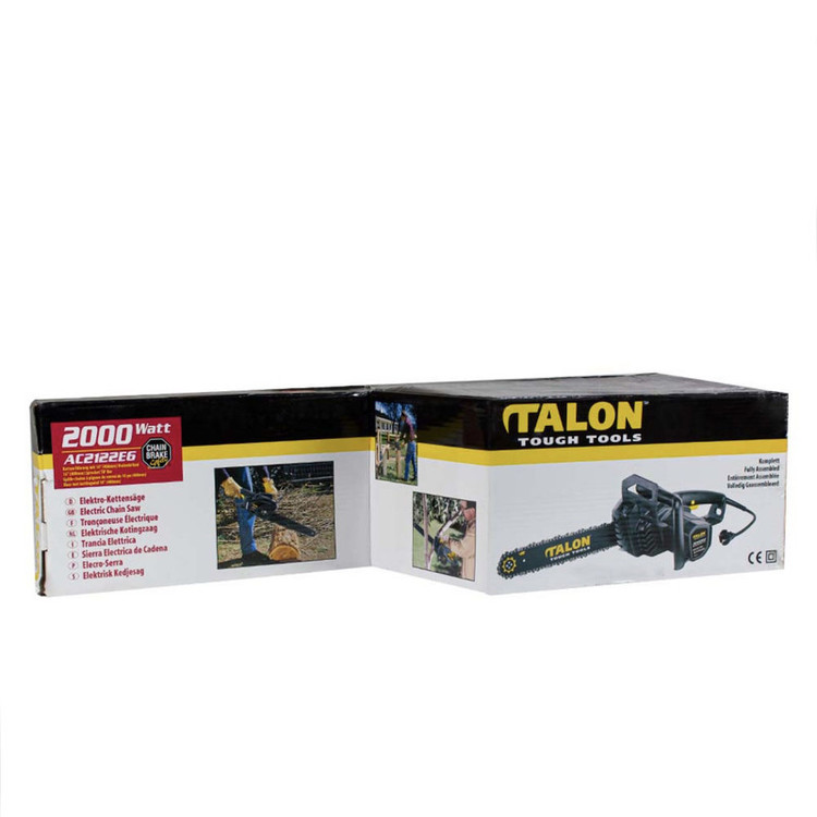 اره زنجیری فوق یکی از محصولات تولیدی شرکت «تالون » است. این دستگاه انرژی مورد نیاز خود را از انرژی الکتریکی تامین میکند و یک اره زنجیری برقی محسوب میشود. طول ریل این دستگاه 40 سانتیمتر است و وزنی حدود 4.7 کیلوگرم دارد. قدرت موتور این ابزار 2000 وات بوده و سرعت چرخشی آن 7000 دور بر دقیقه اندازهگیری شده است. سرعت خطی زنجیر دستگاه نیز 800 متر بر ثانیه بوده و طول برش آن حدود 40 سانتیمتر است. این اره زنجیری با برق 220 ولت شهری کار میکند و از دیگر مزایای آن میتوان به وجود محافظ دست، دنده انتقال قدرت فلزی، عایق دوبل، و پمپ روغن اتوماتیک اشاره کرد.