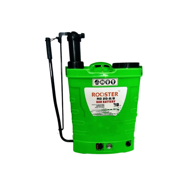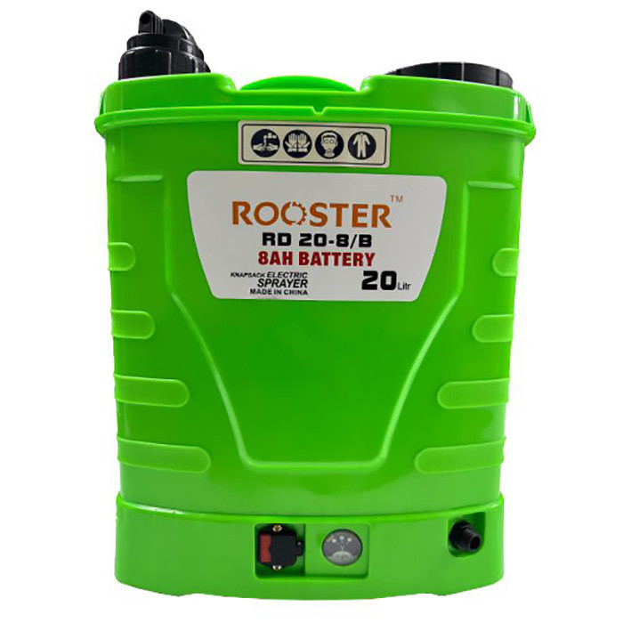 سمپاش دوکاره روستر بصورت شارژی و دستی و توان باتری 8 میلی امپر و با گنجایش 20لیتر میباشد و بصورت یک پمپ میباشد.