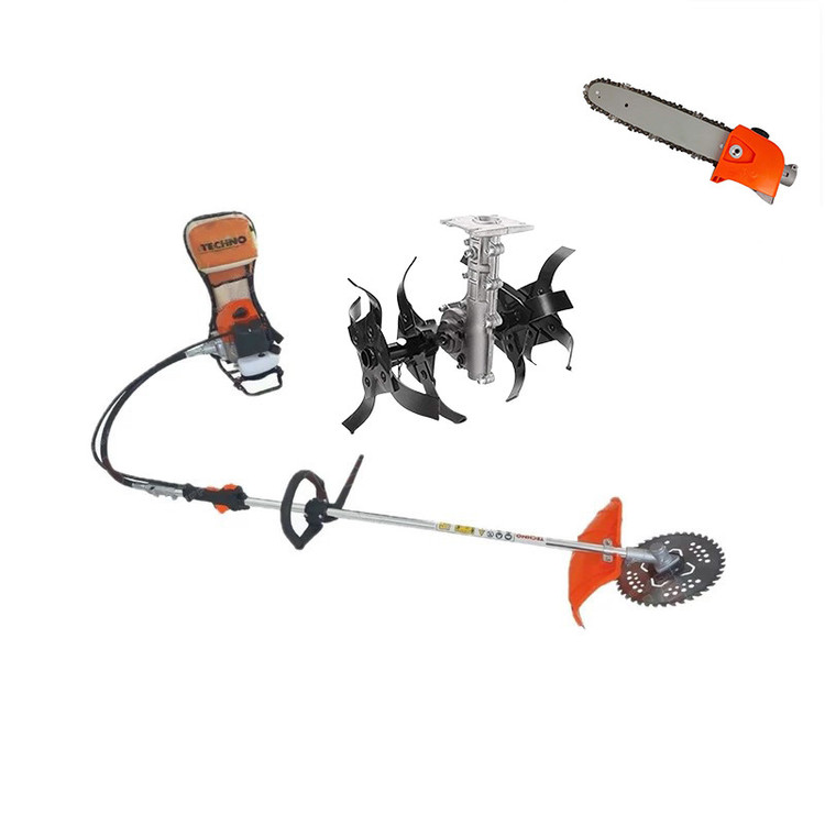دستگاه علف تراش کوله پشتی تکنو علفتراشی است که به نسبت قیمت خود از کیفیت بسیار مناسبی برخوردار است. این دستگاه علف تراش پشتی دارای پشتی بلند می باشد. این پشتی دارای بافت نرم و مناسب است. که سبب کاهش فشار به کاربر می گردد. در قسمت جلوی پشتی، کیف ابزار جهت همراه داشتن آچار آلات مورد نیاز تعبیه شده است.در دو رنگ مشکی و نارنجی موجود میباشد.و همراه با الحاقی روتیواتور و الحاقی تبدیل علفزن به اره میباشد که بسیار کاربردی است